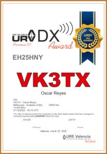 El diploma Maximun DX se otorga a la estación más distante que haya contactado con cada uno de los distintos indicativos especiales operados por la URE de Valencia.