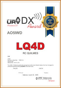 The Maximum DX award is given to the most distant station that has contacted each of the different special call signs operated by the URE of Valencia.