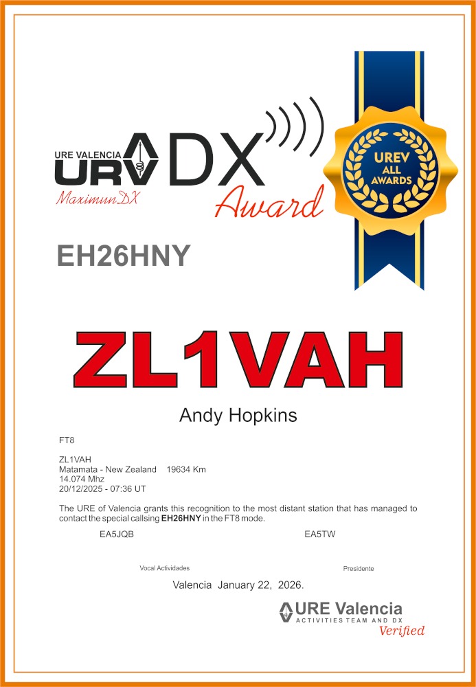 El diploma Maximum DX se otorga a la estación más distante que haya contactado con cada uno de los distintos indicativos especiales operados por la URE de Valencia.